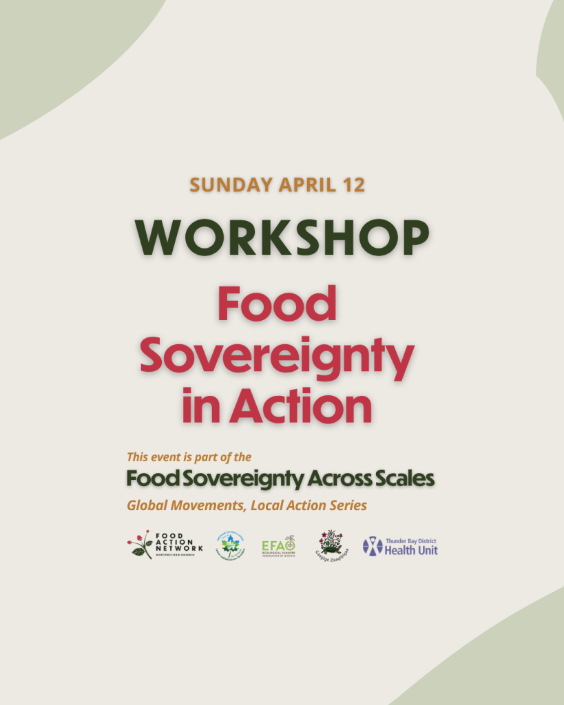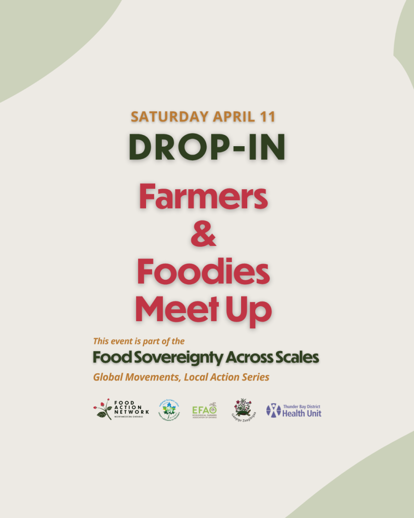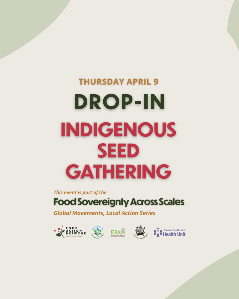 The Food Action Network of Northwestern Ontario believes that equitable and sustainable food futures begin by supporting Indigenous food sovereignty in all its forms. We honour our responsibilities to this place and all its relations, including acknowledging the ongoing presence and leadership of Fort William First Nation, our hosts. We also acknowledge our responsibilities under the Robinson Superior Treaty of 1850 and offer deep respect and gratitude to the Elders – past, present, and future – who hold the knowledge, stories, and traditions that guide this work forward.
